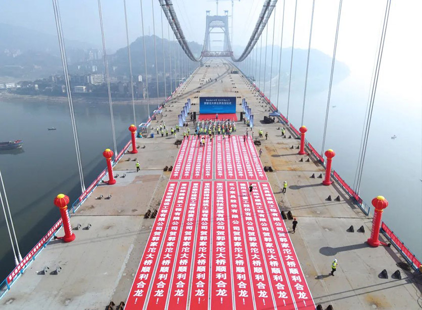 國內(nèi)最大跨度公軌兩用懸索橋——重慶郭家沱長江大橋成功合龍